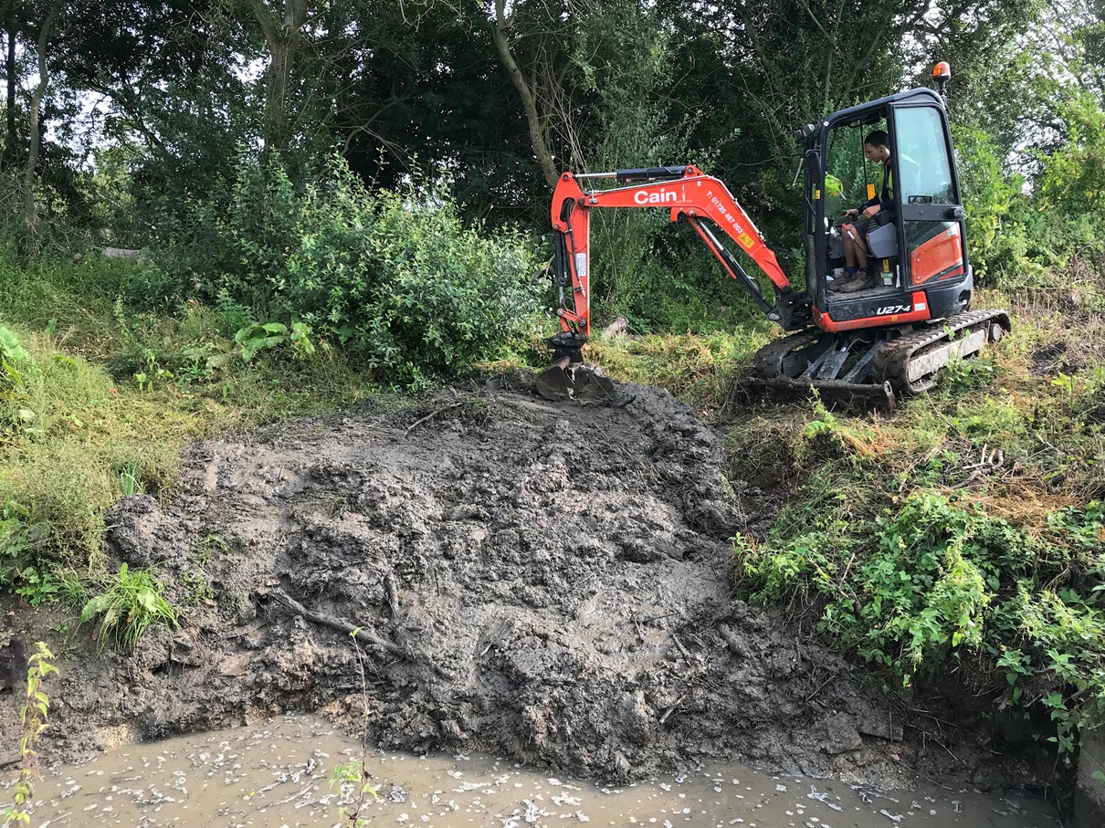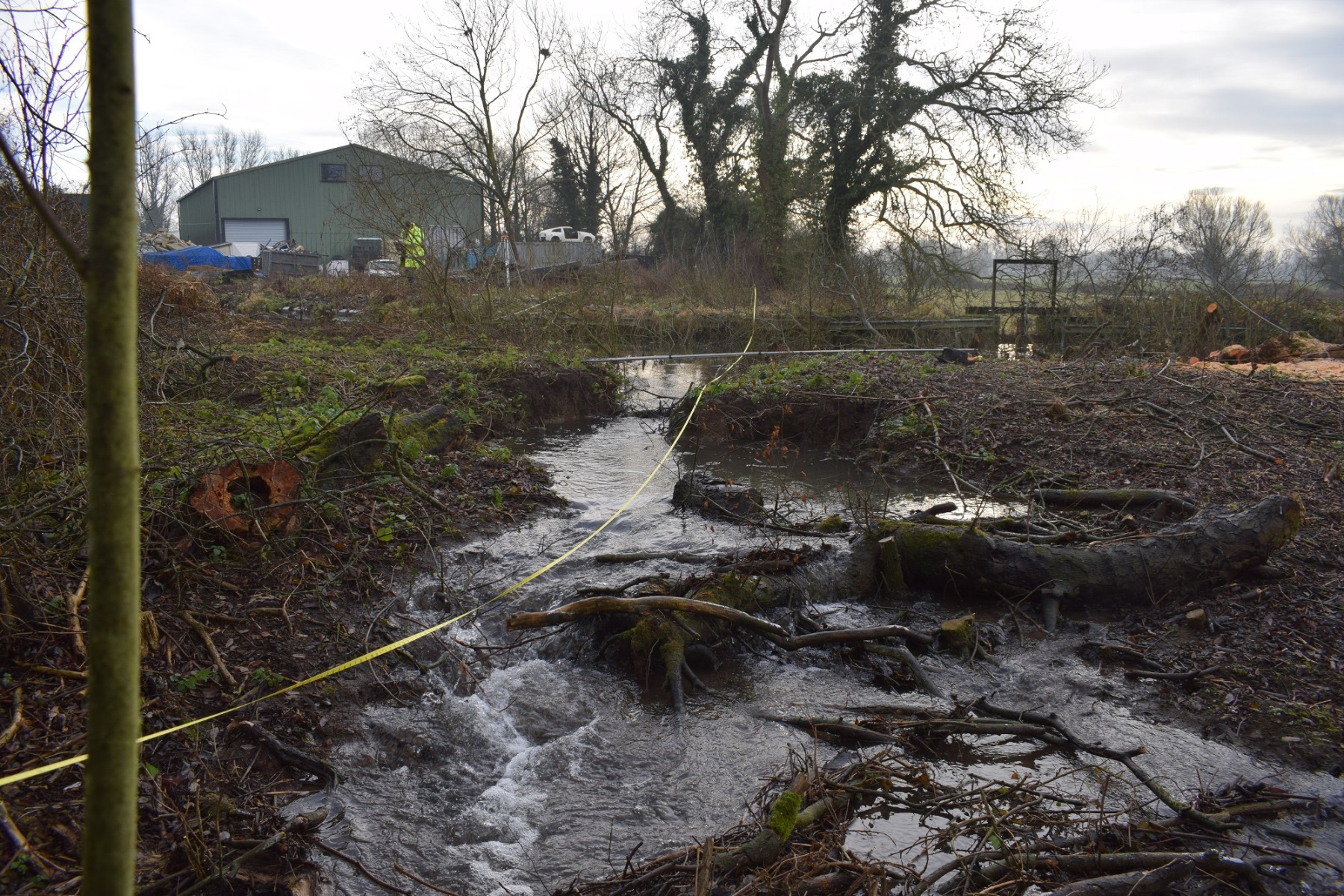 Having flooded a vast area of the neighbouring fields, an emergency solution was put in place by Cain Bio-Engineering in January of 2018 using sand bags and geo-textiles to contain the river. Later in the year, the temporary repair structure was removed and replaced by a solid and long lasting solution, protected from further erosion by a two-tier coirnet revetment.