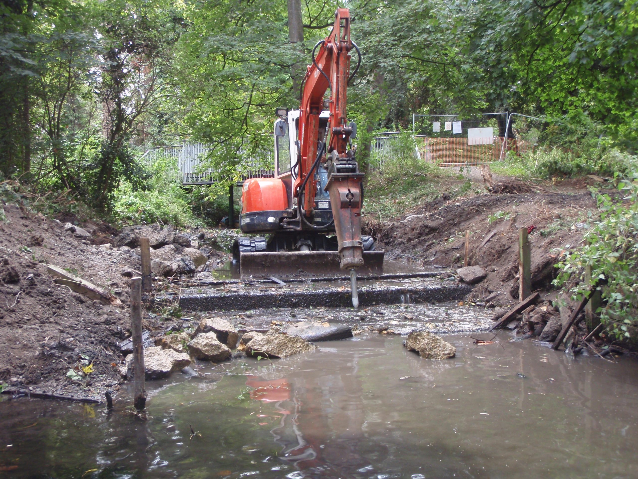 The River Wandle at Revensbury Park splits into a main and side channel, both of which are impounded. A stepped concrete weir on a side channel of the River Wandle created a complete barrier to fish passage. The weir also led to sluggish upstream river speeds and the silting up of the channel limiting its habitat diversity.