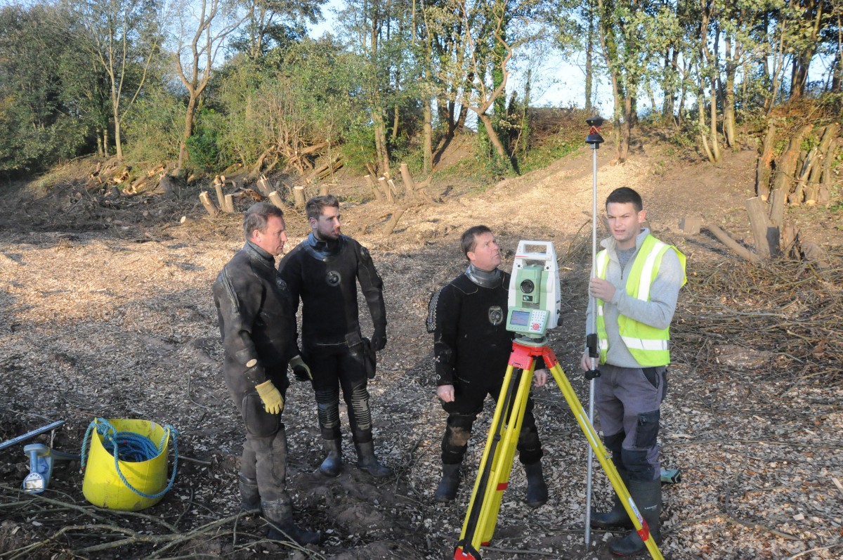 Photo 37 James Sowden, Cain Bio’s in-house surveyor, briefing the operations team during a detailed ‘topo’ survey in preparation for an up-coming re-alignment of the river Mersey. Detailed ‘topo’ survey data is critical in understanding how to manage river flows down any given gradient.