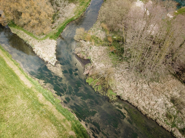 April 2019 – Detail of the developing inside meander wetland habitat, essential to swim-up fry, brook lamprey and numerous invertebrate species.