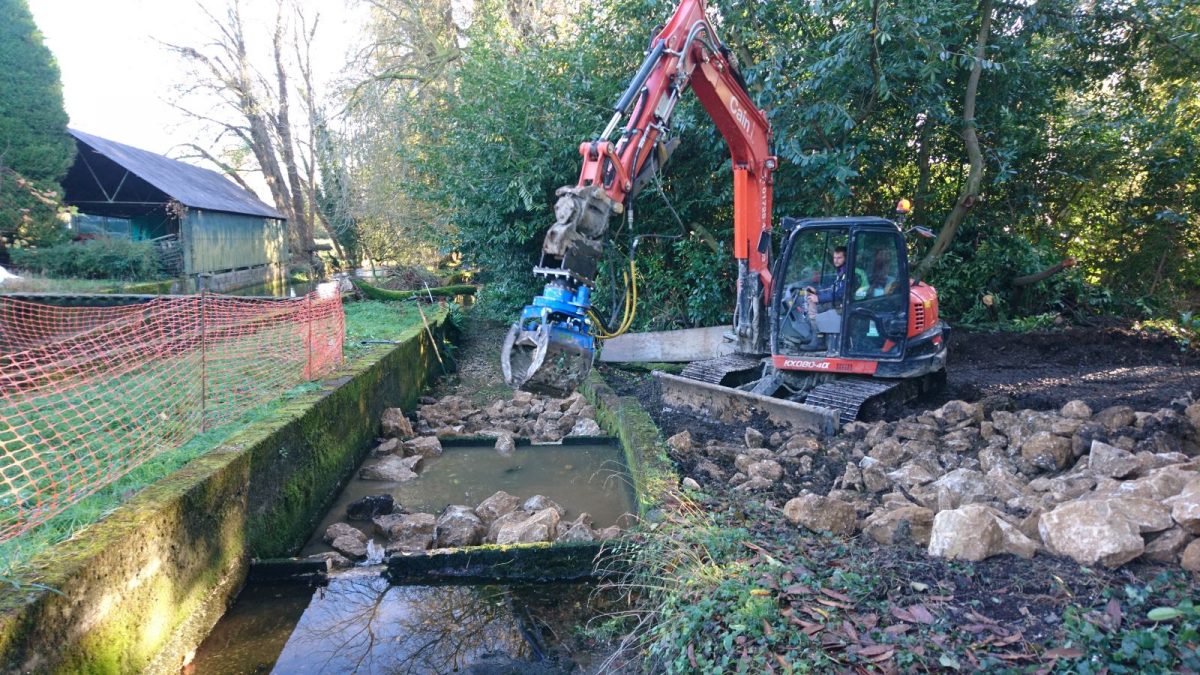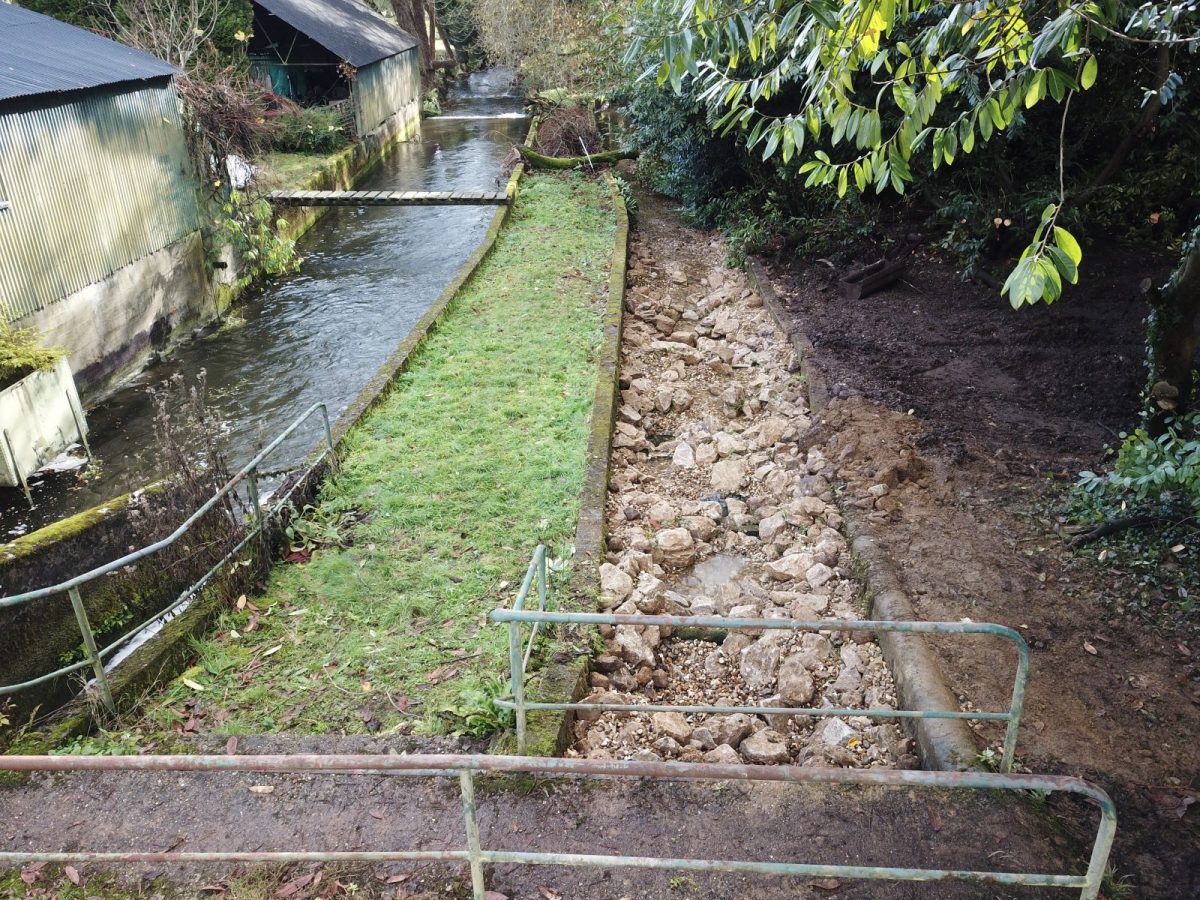 Alongside Wessex Rivers Trust (WRT), Cain Bio-Engineering completed the construction of a fish pass on the Bourne Rivulet (a tributary of the river Test) in Hampshire. The disused sawmill at this location posed a complete barrier to fish passage, impeding connection between spawning and juvenile habitats upstream, and an abundance of adult habitat downstream.