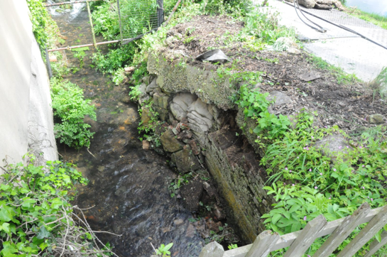 A short section of hard engineered bank upstream of a culvert inlet within the grounds of Burgate Court, Fordingbridge. had partially collapsed into the stream. The bank erosion and wall collapse were risking blocking the culvert, which could have led to localised flooding.