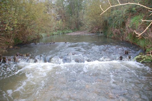 The riffle attenuator, constructed from natural materials, has proven remarkably resistant to a succession of winter flood events, providing in the meantime additional protection to the new bank whilst creating a natural spawning habitat and resting pool for migratory fish.