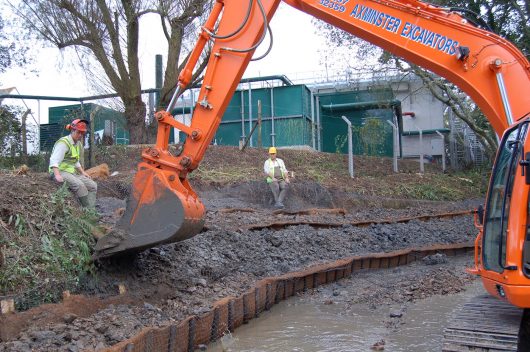 Wessex Water Plc operates a local sewage treatment works, the settlement tank of which is perched close to the edge of a highly-erosive outside bend of the river, shortly before it enters sea.