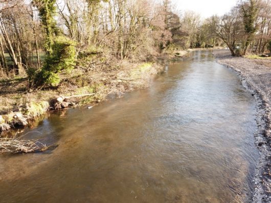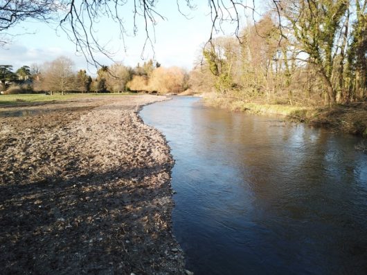 - Installation of a continuous raised-gravel bund down the entire length of the reach on the opposite (non-fishing) L/H bank, to form a new sub-surface inside meander with back-water.