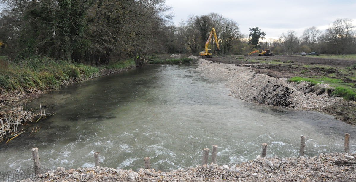 To date, generations of anglers and riparian owners have seen out their fishing careers on over-wide, slow-flowing chalk stream environments, artificially backed-up by weir structures and badly degraded by sedimentation and historic land-drainage practices. Failure to act due to ‘fear of the unknown’, tradition and a lack of awareness perhaps, is understandable given that river restoration in the T&I region is still in its infancy, coupled with the fact that to date, major schemes such as this are the exception rather than the rule. Change is being driven, however, by widespread concerns about climate change, water abstraction, Phosphate enrichment, heavy siltation, lack of natural salmonid recruitment and impacts on invertebrate fly life. The challenge throughout this project, therefore, was to deliver a demonstration site with a high-quality outcome to combat these many concerns, whilst simultaneously meeting the demands of a diverse and often conflicting set of stakeholders.