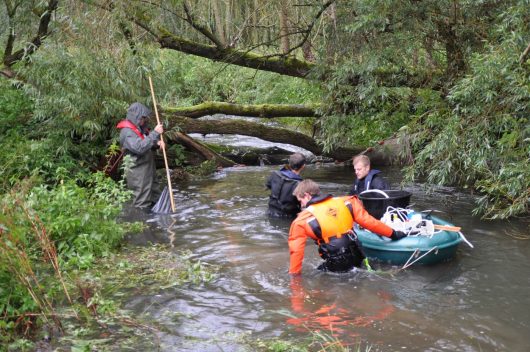 18 months later the new channel was electro-fished. Over 500 individual fish were recorded covering 13 different species in a 250 meter stretch.