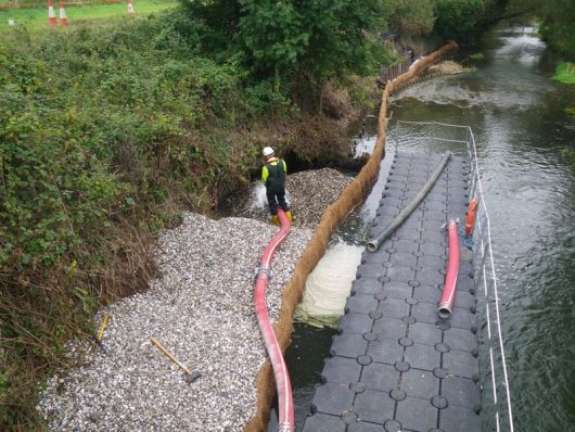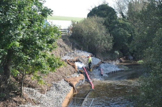 “A traditional repair involving sheet piling, gabion walling and granular backfill would have been very disruptive and incongruous with AONB, SSSI and Special Area of Conservation status, harming the water quality and causing concern to our client and local stakeholders. It became clear that we needed a radical approach to deal with such a delicate issue. CBE, led by Simon Cain, devised a solution which would meet all of the challenges faced by the crumbling river bank”.