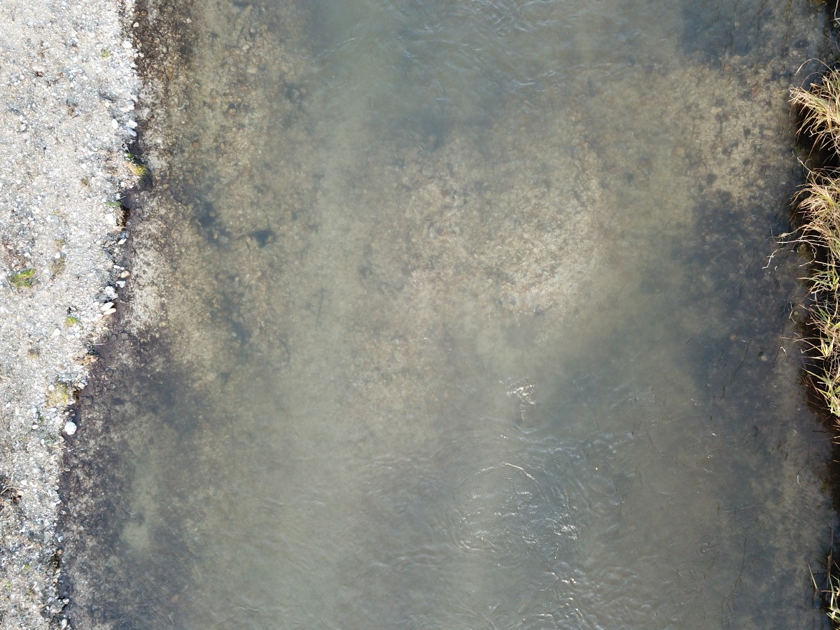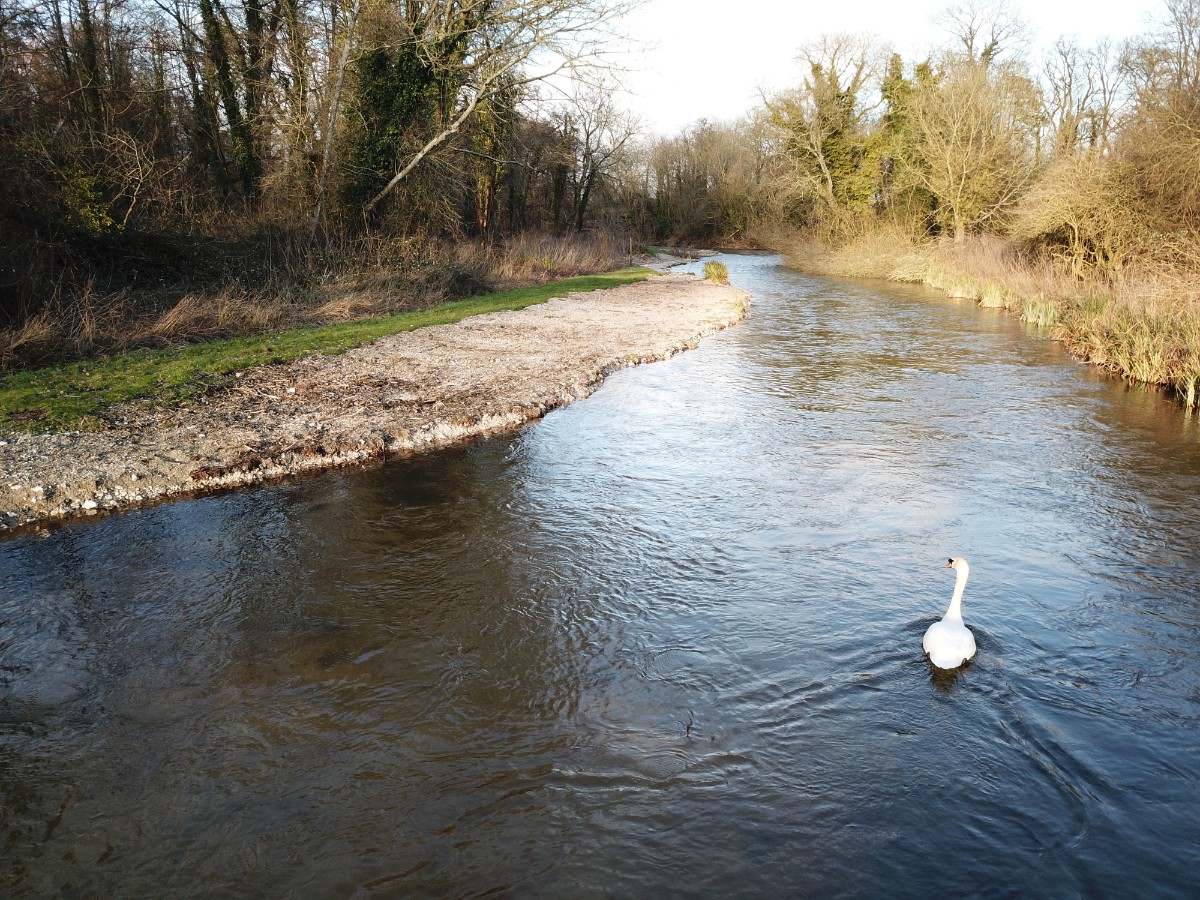 ‘X’ marks the spot where on 02/01/18 just three weeks after project completion a hen salmon was observed cutting a large redd on the recently-placed gravels. The up-welling of the 2m wide redd can be clearly seen.